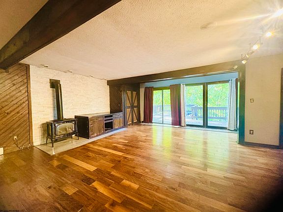 ALMOST HEAVEN! This private sanctuary just minutes from Cheat Lake features a spacious deck overlooking a fully fenced backyard, complete with a cozy firepit—perfect for relaxing or entertaining. Inside, the open main level offers a welcoming layout highlighted by a wood-burning stove and a conveniently located laundry room. The second level includes three bedrooms and a generously sized full bath, with a Murphy bed thoughtfully installed in the third bedroom for added flexibility.