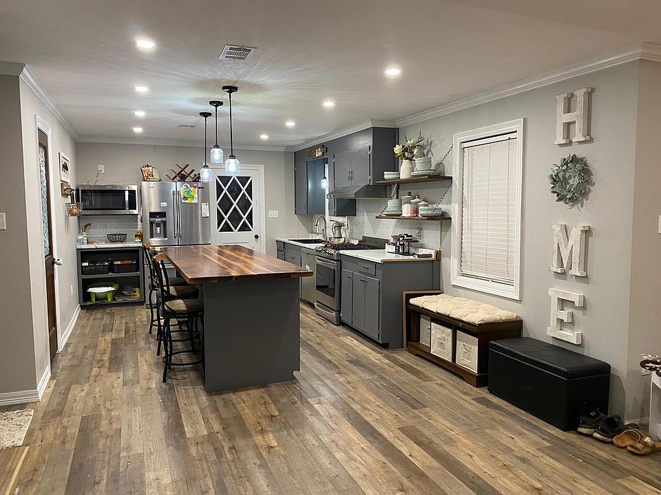 NEWLY REMODELED 4 bedroom 2 bath home in a quiet cul-de-sac. 2 walk in showers and 1 large Bathtub. Indoor laundry room and walk in pantry. House has all new electrical wiring, plumbing, insulation, floor, sheetrock, bathroom fixtures and LED lighting throughout. Brand new 4 ton central A/C unit and 50 gal water heater. Gas range/stove, Central heat, and water heater. Electric Washer/Dryer hookups. Smoke/Carbon Monoxide detectors in each room and hallway. NO smoking. Tenant is required to provide proof of renters pet insurance for any pets to be considered. Tenant is responsible for transferring utilities into their name prior to move in.