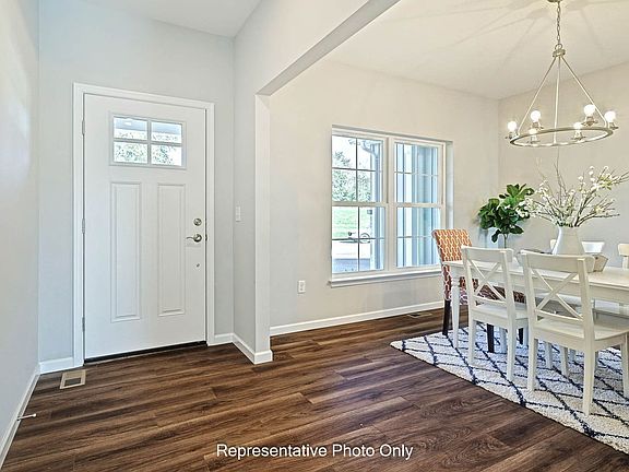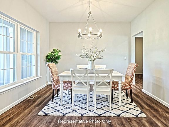 Sunny family room (with optional fireplace) is open to the breakfast area, which provides sliding glass door access to the patio, and is also open to the kitchen.. Owner's suite with optional tray ceiling includes a spacious closet and private bathroom. Formal dining room at the front of the home offers an elegant touch to the entry with optional tray ceiling, as well as convenient access to the kitchen. (Pricing may reflect limited-time savings/incentives. See Community Sales Manager for details.)