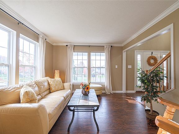 Light, bright, beautifully-maintained home on private street. Stately, end-to-end front porch graciously greets you. Updated elegance welcomes you into 2-story foyer bathed in natural light thanks to walls of windows. Showcased by luxury laminate floors throughout; granite counters, SS appliances & sizable island in gourmet kitchen; 4 updated bathrooms; all new lighting. Love sipping morning coffee from the private deck overlooking a lovely treelined yard. Dedicated 1st-floor den perfectly suits today's work-from-home employee. Generous family room's gas fireplace is cozy during chilly nights. Formal LR & DR with bay window & crown molding complete this level. Upstairs, retreat in the vast owner's suite boasting picturesque views of the yard, 2 walk-in closets & updated bath w/jet tub & separate shower. Three other spacious bedrooms, all w/ample closets & ceiling fan/lights, & main bath. Enjoy the finished basement w/half-bath, laundry room & massive storage closet. NO HOA!