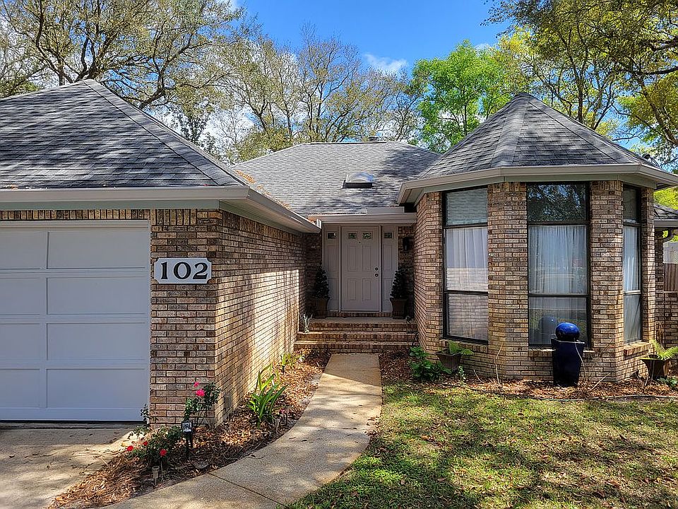 CANAL FRONT FOR SALE This single story, 3 bedroom, 2 ½ bath brick home sits on a large corner lot with mature oak trees and 102-foot canal frontage! Your private dock is less than 200 feet from the mouth of the canal onto Buck Bayou with direct access to the Bay. Enjoy fishing, kayaks and paddleboarding right from your own backyard! Come relax on the backyard paver patio perfect for outdoor entertaining grilling and dining. Indoors the main living area boasts a 10 foot ceiling, wood burning stove, tile floors and semi open floor plan. The kitchen is equipped with a new induction cooktop on a granite countertop island, solid wood cabinets with LOTS of storage, updated hardware and fixtures, an additional under the counter icemaker and a breakfast bar. Primary Bedroom has a 10 foot tray ceiling, en suite bath with a double sink, walk-in closet and large jetted tub/shower. New Bonus room is accessible from the bedroom or living room, and leads to the patio outside. Enjoy year round comfort in this heated and cooled space with new, insulated, vertical fold windows which open to allow for unobstructed views. 2 additional bedrooms and another full bath are at the front of the house. An attached, oversized garage has room for a work bench and plenty of attic storage from the pull-down stairs. Driveway has 2 additional parking spaces. There’s a separate laundry room with washer/dryer hook up and half bath at the back entrance. The Roof was installed in 2015, Brand new seamless gutters with leaf guards in 2021, New 3 ton Trane Run Thru HVAC installed late 2022. There’s updated Rainbird irrigation controllers, termite monitoring bait station system, and power to the back yard and the dock There’s also running water available at the dock, and room for a Boat lift.