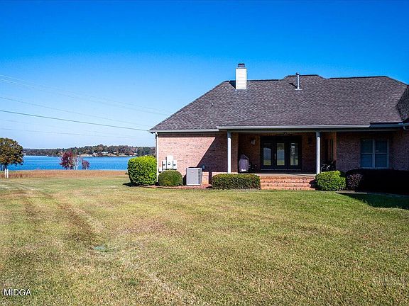 Breathtaking view of Lake Tobesofkee from front porch. Large rooms, all brick home with 4 car garage and open floor plan. Approximately an acre lot, all rooms are spacious, hardwood floors in Kitchen, Great Room and Dining room, hard surface countertops, gas stove, huge bonus room, inviting foyer entrance and sitting room off Master.