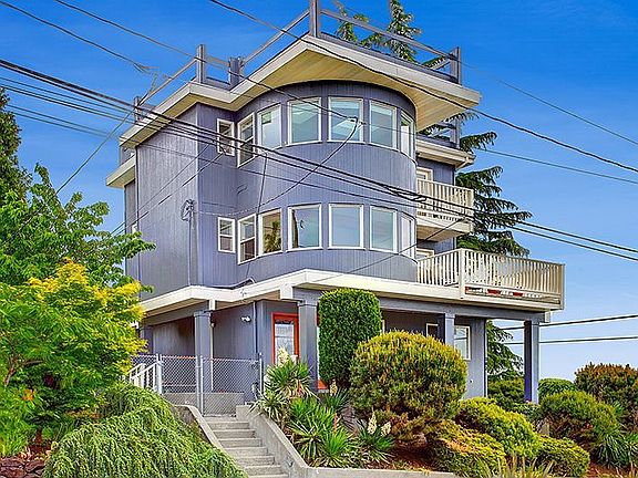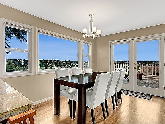 Spectacular contemporary home in Fremont with Rainier to Sound views including panoramic city, sound, canal and Olympics vistas. Main living floor offers a spacious updated kitchen w/ large entertainment size living & dining room plus a view deck. The upper level is a private master suite w/ jacuzzi tub, walk-in closet, office w/ a view & deck. Entry level leads to 2 additional bedrooms and a 3rd bedroom/office/gym downstairs. Fresh paint and refinished wood floors. Come for a tour today!