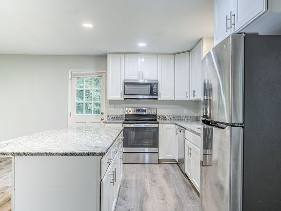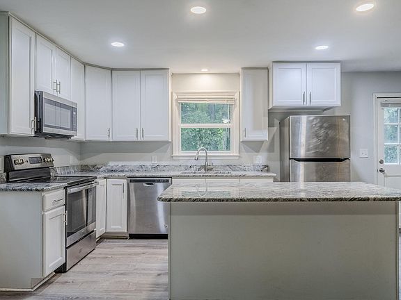 Charming and inviting, this 1-story home offers 3 spacious bedrooms and 2 full bathrooms, perfect for comfortable everyday living. The open floor plan is ideal for entertaining, with a central island that anchors the kitchen and flows seamlessly into the living and dining areas. Accent lighting adds a stylish touch, while windows provide beautiful views of the surrounding trees, creating a peaceful backdrop. Relax and unwind on the welcoming front porch, perfect for enjoying quiet mornings or evening breezes. Schedule a showing today! One or more photos has been virtually staged.