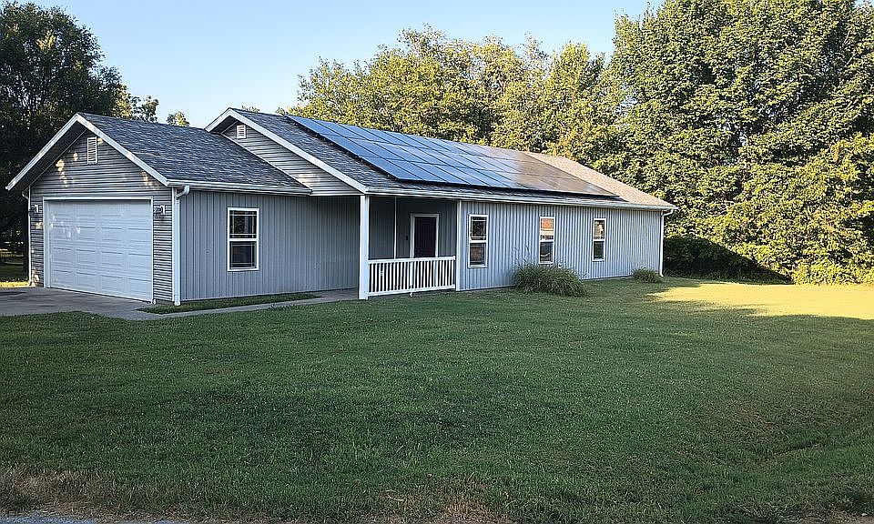 3 bed/ 2 bath corner lot with spacious back yard on a double lot with little under 1/2 acre of space. Home is in town and only a block from police station and walking distance to the city park Home has 9' ceilings with spray foam insulation and energy efficient windows. Low electric bills with the included solar panels system. 10 kilowatt solar system has provided extremely low electric bills from electric company and is paid off and included with home. Electric runs around 70 a month on level pay with a 4 person family over the last few years on average.Open floor plan with kitchen and family room being one large open area. Stained concrete floors and solid core knotty pine doors. Lots of closet space and recessed lighting. 2 car garage with stamped concrete approach, sidewalks, and porches. Generous front porch and large concrete patio in the rear is great for bbq and socializing outdoors. Granite counter tops in kitchen with quartz and cultured marble in the baths. Master bath has his/her walk-in 5' shower with duel shower heads. Large master bedroom with 9 foot closet. One of the extra bedrooms includes duel closets for a shared sibling room. Home also has a security/alarm system. Webb City Schools. Will to work with a buyers agent.