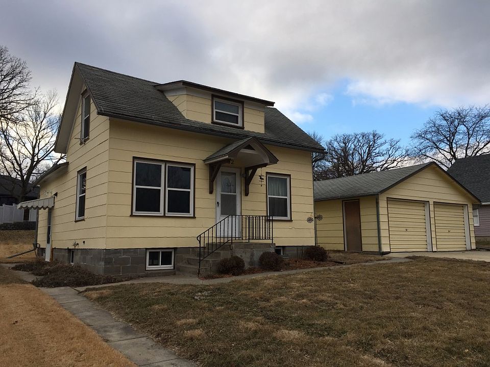 AFFORDABLE SMALL TOWN LIVING! Completely updated inside with new cabinets and counter tops, ceramic tile floor, new bathroom, all new light fixtures, main floor laundry, 2nd floor bedroom and sitting room, full basement with laundry sink, work bench, and exercise equipment, all new plumbing and electrical, new exterior paint, new insulation in the attic, new water supply line, all appliances stay including wtr softener, .25 ac lot with a two car garage and alley access! USDA financing available.