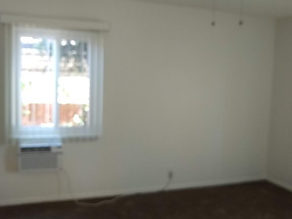 2 bedroom 1 bath apartment with fresh paint and new carpet. Includes stove, dishwasher, built-in microwave, A/C, gas wall heater, shared patio area and pool. Tenant shares two car garage. Street parking available. Close to shopping. Call to make appointment. Owner pays water, gardening and trash. Tenant pays gas, electric and cable.