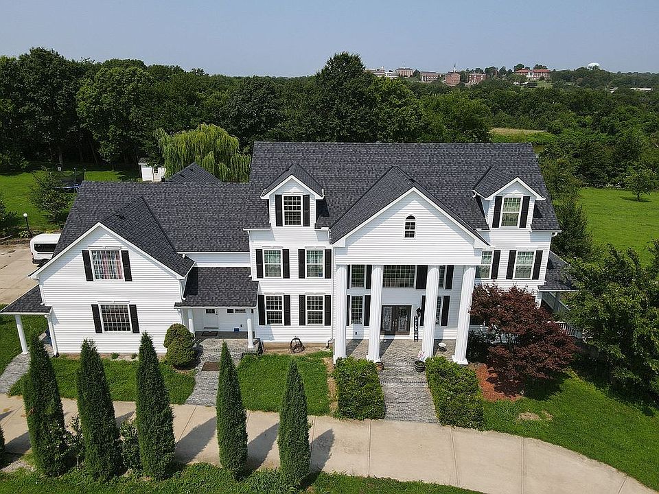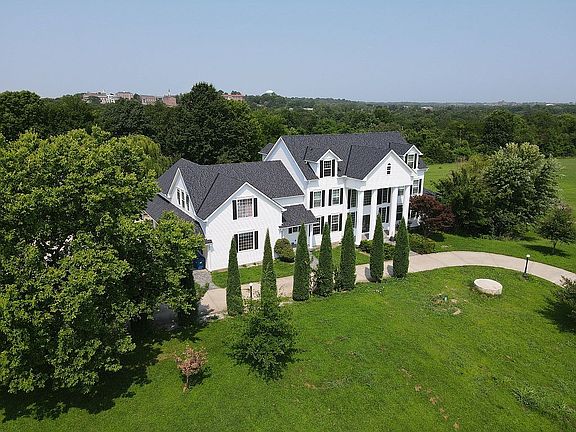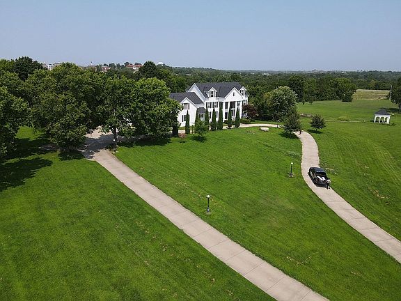 Experience country living combined with the convenience of being near the city! This luxurious 4-story, Colonial-style masterpiece is just around the corner from Historic Downtown Liberty, and a 20-minute drive from downtown Kansas City. The main home overlooks the entire 12.48-acre estate. There is a 100-acre nature sanctuary just down the road. The original builder named it “The Jewell” in honor of William Jewell College, which can be viewed from many locations on the grounds. Venture through the gate and pass under the weeping willows that line the drive. Through the decorative French door, you’ll be astonished by the elegant foyer with striking double spiral staircases, granite tile floor, and many windows that fill the space with natural light. Bask in the warmth of the holidays as you admire your twelve-foot tannenbaum and rich garlands carefully wrapped around the custom woodwork! The main kitchen has an island with built-in countertop range, walk-in pantry, and an additional closet. All refrigerators, ovens, and dishwashers are included. Large formal dining room with a 12’ table (included), electric fireplace, cabinets, sink, and adjacent full bath. Large living room, parlor/music room, laundry, and plenty of storage. Guest suite with large WIC, full bath with jetted tub and walk-in shower, and private entrance via the balcony with a great view. The second floor boasts an executive office with walls clad with woodwork, gas fireplace, and wet bar. The 5 beds and baths each have unique qualities that you must see for yourself. The enormous master suite provides privacy, a balcony, 2 WICs, electric fireplace, custom cabinetry, and a wet bar. Master bath with skylight, huge double shower, double vanity, and laundry hookups (machine included). The third floor is newly remodeled to create a place for family time. Enjoy playing games, or watch a movie on the 98” screen and projector (included) and built-in surround sound. Enjoy watching the sun as it sets behind the College from the small third-floor balcony. A fully equipped kitchen, 2 bedrooms, a 3/4 bath, and access from the back stairs also make it possible to use this level as a separate apartment. The walk-out basement offers one additional bedroom, several storage rooms, a dance studio, 3/4 bath, kitchen, and a common room. Plenty of outside space, and R-1 zoning allows livestock. Chicken coop with electricity. Entertain in the back yard on a concrete pad with electricity and two metal-frame gazebos. There is a concrete walk that leads to a large gazebo with electricity, fire pit, and a water hydrant. Escape to the serenity of the half-acre, spring-fed, stocked pond! The only thing better than having one amazing house on an estate, is having TWO! The 40’x60’ outbuilding (“guest house”) is not currently livable, but has a brand-new furnace, AC unit, and tankless water heater. Large, extra-height garage with the capacity to hold a 30-foot motorhome. When finished, this building has the potential to be an additional 4 bed/2-3 bath house! Recent updates include: -New roof, gutters, and siding on all buildings in 2024. -2” water main, 2 tankless water heaters in the main home, 2 NaturalSof catalytic descalers -Main home and guest house converted to natural gas, and propane tanks have been removed -4 out of 5 furnaces and AC units replaced; the remaining unit tuned-up. Air Scrubber system also added. -High-speed internet to both the main home and guest house. -Many electrical switches and outlets have been replaced with smart Alexa-compatible versions Liberty has much to offer, including great schools, a rec center, a great community chorus, nearby hospital, and it is just minutes away from Kansas City! If homeschool is more your thing, Liberty School District is also very accommodating for students who wish to enroll in electives. A true gem like this rarely goes up for sale. It’s time to fulfill your dreams and make it yours today!