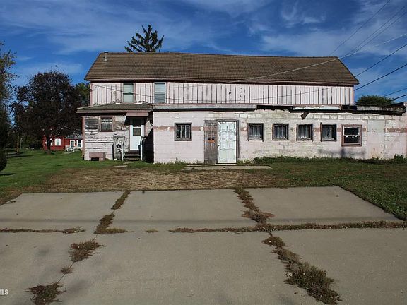 This .58 acre level lot in the city has a 4724 square foot building was set up for auto body work with 2 separate bays, additional workshop/garage space, attic above the garage and 3 bedroom house attached. It is zoned B-1 (Business district) commercial so it has various types of potential use. Detached 360 square foot garage. Garage has a separate 100 amp electric panel and 220 amp service. Sold AS-IS.