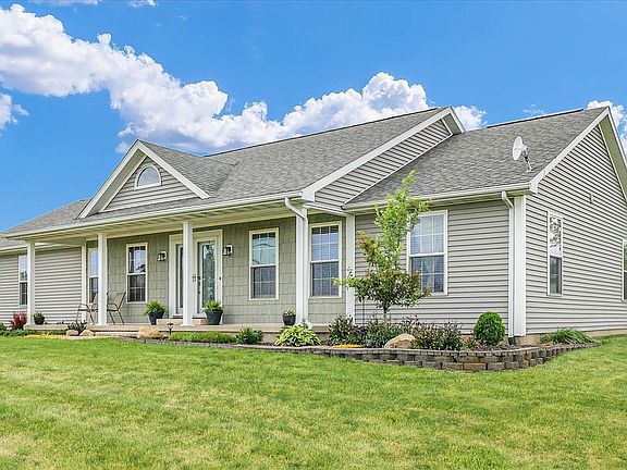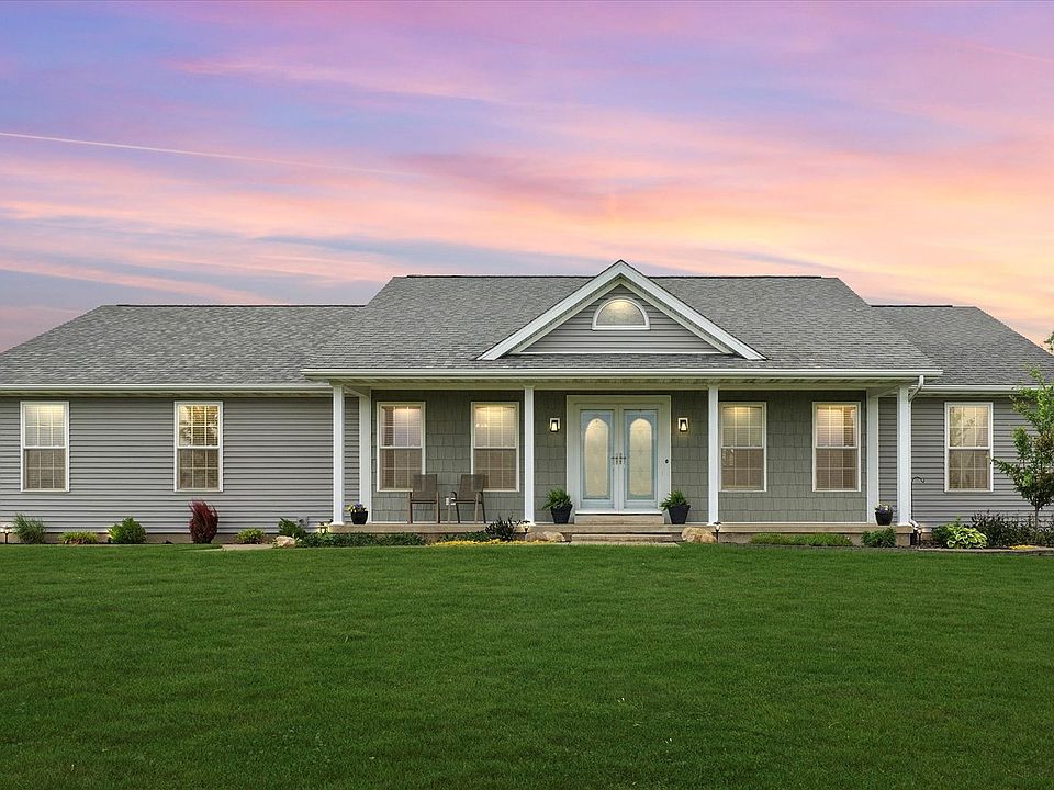 Welcome to this charming 3-bedroom, 2-bath ranch-style home located on a spacious corner lot in the peaceful town of Gifford. With pond access and no HOA, this property offers both privacy and freedom. Inside, you'll love the open-concept floor plan and soaring cathedral ceilings that create a bright, welcoming atmosphere. The kitchen, living, and dining areas flow seamlessly, making it perfect for everyday living or entertaining. The large master suite features a spacious master bath, offering a private retreat to unwind. Step outside to enjoy the covered back patio ideal for quiet mornings or evening get-togethers. An attached 2-car garage adds convenience and storage. **Please note: Sellers are unable to close before August 11th.** If you're looking for small-town living with beautiful views and room to breathe, this is the one!