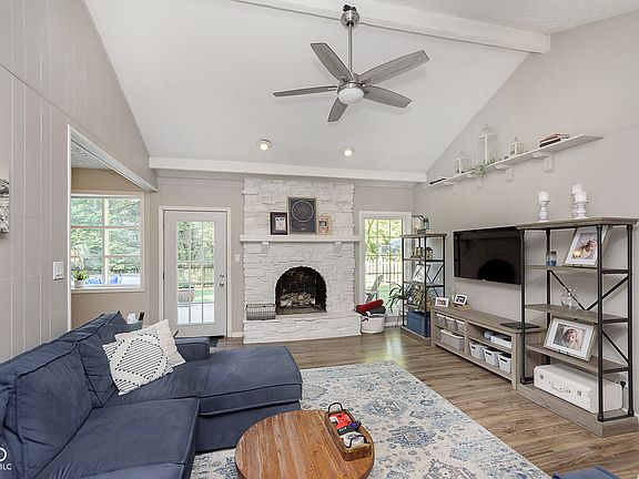 Welcome to this well maintained all brick ranch home located in popular Greenwood neighborhood, Carefree. Boasting an inviting open and airy floor plan, this move-in ready home offers the perfect blend of comfort and style. As soon as you walk in, you'll notice the beautiful laminate floors throughout and the stunning white fireplace in the family room, ideal for cozy gatherings. The kitchen features modern stainless steel appliances and a large, stunning window that fills the space with natural light. Step outside to enjoy the fenced backyard, where you'll find a spacious patio and a fire pit-perfect for entertaining or relaxing with family and friends. The corner lot provides added privacy and space, enhancing your outdoor living experience. This home features three bedrooms and two modern bathrooms, each with double sinks for added convenience. The primary bedroom includes a walk-in closet, providing ample storage and organization options. As part of this vibrant community, you'll have access to a range of amenities including a clubhouse, pool, basketball courts, and tennis courts. Don't miss your chance to own this low maintenance home in a fantastic neighborhood!