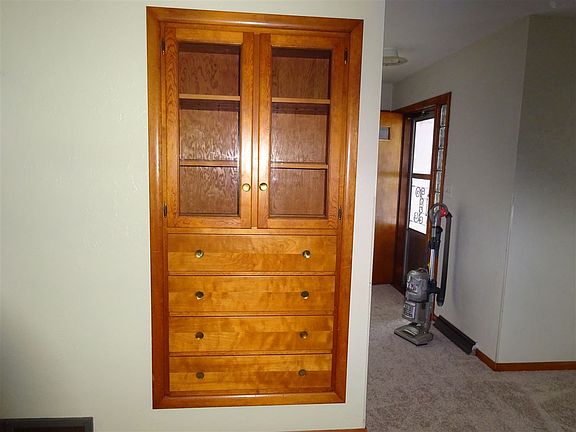 Cute 1 story home. Over 1000 square feet of living space, 2 bedrooms, garage & more. New carpet in living & dining room. Furnace new 2009. New roof 2014 along with added insulation. Built-in dining room cabinet. 2 refrigerators. Alarm system was never used by this owner. Handy location.