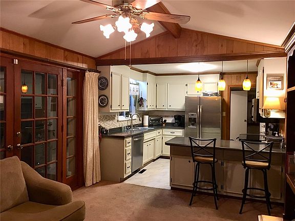 - Ceiling Fan(s), Cathedral Ceiling(s), Fireplace, Laminate Countertop, Bath in Primary Bedroom, Main Level Primary, Pull Down Attic Stairs, Smooth Ceilings, Shower Only, Cable TV, Walk-In Shower, Window Treatments, Workshop