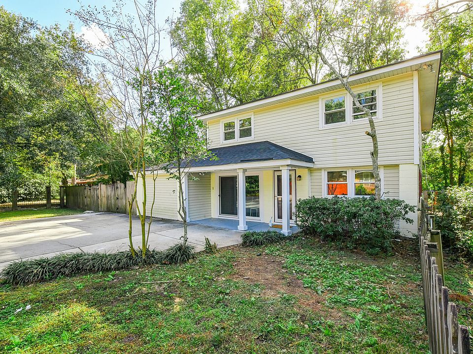 This spacious home is situated on a massive corner lot of nearly 1/3 of an acre in Summerville! No HOA and plenty of space to enjoy the outdoors in the heart of Summerville! This huge lot has plenty of space and privacy for a pool! A welcoming front porch greets you as you enter the home to find a bright and open floor plan with lovely flooring and great natural light. Pass through to the dining area with built-in cabinets for extra storage and the updated kitchen with white cabinets and stainless steel appliances. On the main level, you will find the owner's bedroom with an attached sitting room/office/optional bedroom. The downstairs bath is beautifully updated and features a large step-in shower.Head to the second level to find three spacious bedrooms and an updated full bathroom with a tile shower. The fenced backyard has mature trees, a storage shed, and has plenty of space to enjoy the outdoors. A new roof was installed in 2020 and a new HVAC system was installed in July 2022. This property is conveniently located 2.6 miles from Historic Downtown Summerville, 4.7 miles from I-26, and 14.1 miles from Charleston International Airport. Don't miss out on this great home!