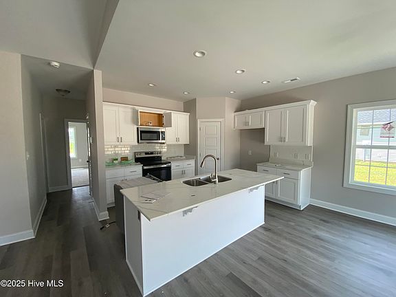 The kitchen includes granite countertops, a tile backsplash, and a functional layout that flows into the main living areas, perfect for both everyday living and entertaining.