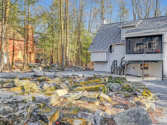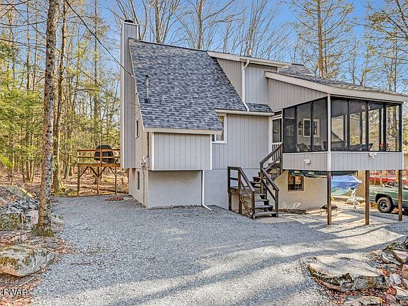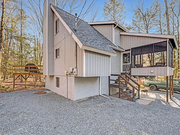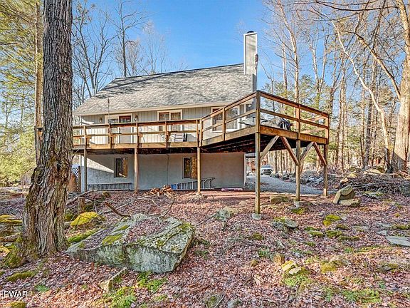 Beautiful Retreat in The Hideout's Golden TriangleWelcome to your perfect getaway in The Hideout, a premier amenity-filled community in the Northern Poconos! Located in the highly sought-after Golden Triangle, this home is just minutes from Deerfield Lake, Roamingwood Lake, the Main Lodge, Tiki Bar, Beach, Tennis and Pickleball Courts--all within close proximity for easy access. Tucked on Oak Circle, a quiet loop with minimal through traffic, you can even enjoy a peaceful walk to the Deerfield Lake dam.This home has great curb appeal with a new roof, circular driveway, screened-in front porch, and a rear deck that expands into a unique corner wraparound design--perfect for relaxing or entertaining.Inside, you'll find three finished levels, each with its own bedroom and bathroom, offering ideal flexibility for guests or multi-generational living. The living room features soaring ceilings, a charming brick fireplace, and new laminate flooring that runs throughout the main spaces. Upstairs, a loft overlooks the living area, adding a cozy, open feel. The walk-out lower level includes a spacious recreation room--perfect for game nights or a hangout space.Home comes furnished, so you can move right in and start enjoying The Hideout lifestyle!