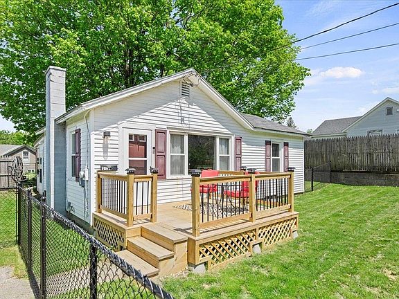 Welcome to your cozy retreat nestled close to town! This delightful two-bedroom, one-bathroom home offers comfort, convenience, and character. Perfect for those seeking a haven with easy access to local amenities. Located just minutes from downtown, this property enjoys the best of both worlds–the tranquility of a residential neighborhood with the convenience of nearby shops, restaurants, and entertainment options. Each bedroom provides a comfortable space for relaxation and rest, both with hardwood floors and soothing tones, ideal for individuals, couples, or a small family. The kitchen, small but inviting, has space for a bistro table for added workspace in addition to the counter with updated tile backsplash. Feel like you are stepping into a spa with the newly renovated tile surround bath with HUGE waterfall shower head. Enjoy the outdoors from not just one, but two inviting porches. Whether you're sipping your morning coffee on the new front deck or unwinding after a long day on the large three-season porch on the rear of the house, these spaces offer the perfect retreat. Outside, your furry friends or little ones can roam freely in the fenced yard, providing peace of mind and space to play. Finally, ample off-street paved parking and a one-car detached garage for added storage. Whether you're a first-time buyer, downsizing, or seeking an investment opportunity, this property is sure to impress. Schedule a viewing today! Conventional financing preferred.