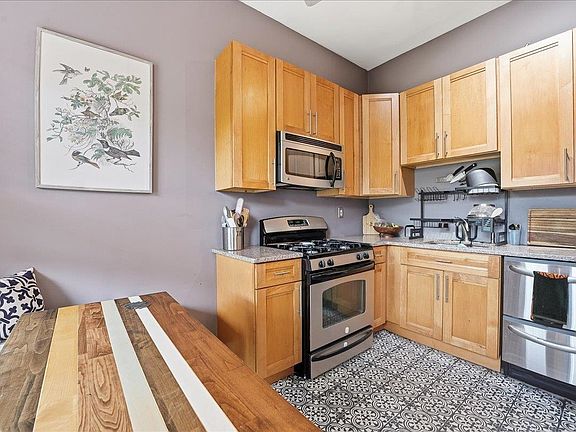 Welcome to 102 Ogden Avenue — a bright and comfortable home tucked on one of the most coveted streets in The Heights. The space has great flow, high ceilings and tons of natural light that gives it an open feel from the moment you walk in. The kitchen is warm and functional with solid wood cabinetry, stainless steel appliances, granite counter and a patterned tile floor that adds personality. Enjoy your meals in the built-in dining nook that makes for great use of the space. The living area gets tons of natural light while the bedroom is large enough for a full furniture set up plus a desk or reading spot. You'll also find in-unit laundry, ample closet space and a full bathroom with tub. Additionally, you’re right across from Riverview-Fisk Park and the dog park and just a short walk to the 9th Street Light Rail elevator and local spots such as The Alps, Low Fidelity, Bread & Salt and everything that makes Hudson County such a lovely place to live.
