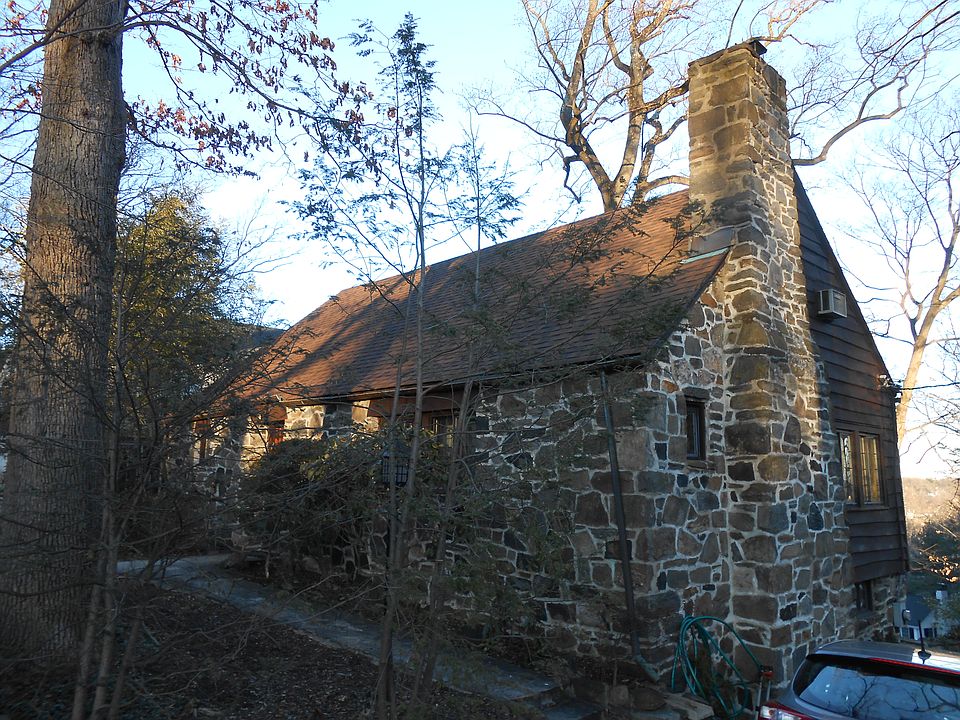 Unique Enchanting newly renovated English stone cottage with spectacular 4 season treetop views. . .Terraced gardens with two patios and koi pond with waterfall. Walk to Scarsdale village and train. 30 Min train ride to Grand Central. 4 Bedrooms/Master bedroom with huge walk in cedar closet. 2 fully tiled baths/ master bath with enclosed widowed whirlpool spa.. Beamed and paneled living room with large wood burning fireplace and hardwood floors.. Spacious open skylighted gourmet kitchen with cabinets and counter tops galore/ sun room/dining room -- with sunrise views. Partially finished basement with laundry room, gym/music room, and storage room/office. Attached garage. Scarsdale address and Scarsdale Village proximity with low Yonkers taxes.