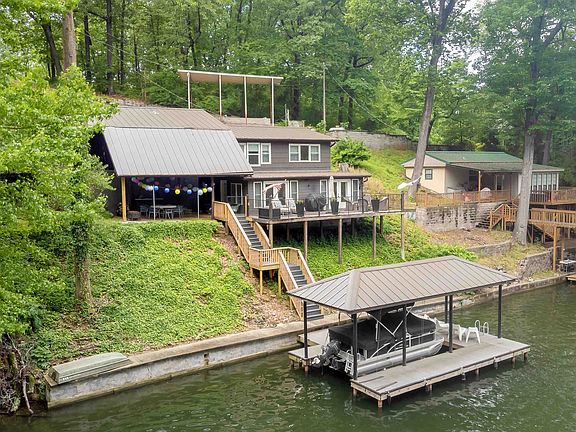 Lake Camp for Sale!!! Charming little money maker with many recent and expensive updates. Use as Air BNB if you like, or your own personal lake camp, all to yourself. Ready to go! Furnishings stay. Don't miss a day, just bring your swimsuit! Only 5 mins from the Singing River Bridge, and proximity to downtown Florence AL is super. Deep water all year. 2021 metal roof on house and dock, Pella Windows and Doors installed in 2019. Many more upgrades including LVP flooring, new plumbing and light fixtures, composite material on deck and the list goes on! The drive is steep so that house sits close to the water. After you drive down one time, you will know there is plenty of space to turn around and have carport parking there as well. The structure behind house is a RV parking station and will be painted.