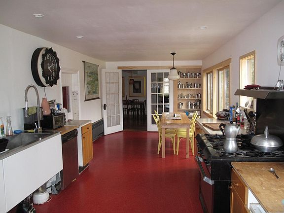 Charming farm house with huge barn in the Hamlet of Upper Red Hook on a quiet street. Original wood floors and period detail in both House and barn, now being used as a Studio/Workshop. Two working fireplaces downstairs, great new modern eat in kitchen with Garland Stove and tall windows showering natural light throughout. Windows look out onto private deck and huge back yard with mature trees. Three bedrooms upstairs with an all tile bath, enclosed cast iron tub and separate shower. Downstairs is a separate entrance with a mud room, laundry room, bathroom and artist studio or bedroom. New deck off the kitchen with private park like setting in the back yard. Walkable to local grocer and convenient to Red Hook village and schools.