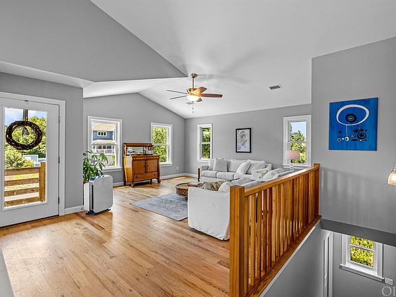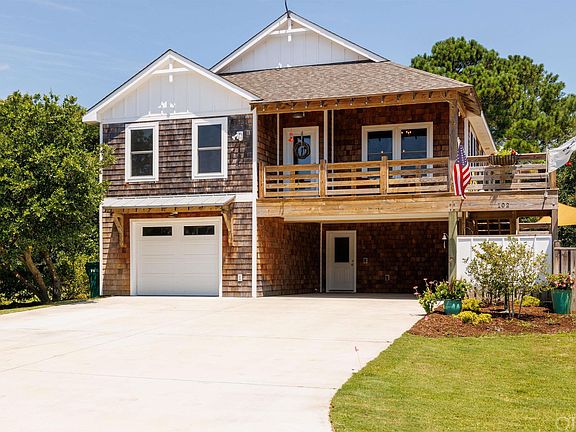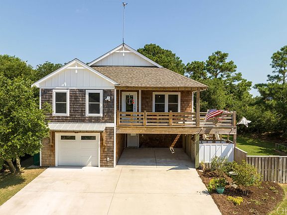 Stunning 4 bedroom cedar shake Duck home just a short walk to downtown! This high and dry property was just built in 2019 and has been meticulously cared for and it shows! Hardwood flooring throughout the main living area, Porcelain tile, quartz countertops and stainless appliances highlight the upgrades of this home. Downstairs there is a large multipurpose game room with wet bar and a large bedroom with its own ensuite, perfect for guests. The spacious completely fenced in backyard offers privacy and a peaceful setting to enjoy the space amongst the gorgeous live oaks! The custom fencing and beautiful landscaping create a natural barrier to any neighborhood noise. Freezer in garage, washer/dryer, TVs and theater sound system all convey. Vacasa rental estimate is for $70 - $85k! Be sure to view this one today!