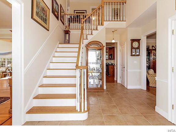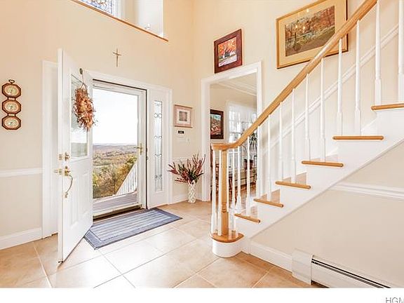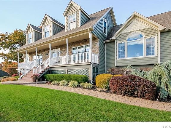 Million dollar views from this custom home in Pomona, NY! You will feel like you are in an airplane: see the Hudson River, Westchester, the Manhattan skyline, the Verrazano-Narrows Bridge, lower Rockland, Boulder Stadium and more from almost every window! Too many amenities to mention in this custom Center Hall Colonial. Sunken family room w/ gas fireplace framed by Palladian windows. Crown mouldings, wainscoting throughout. Large chef's kitchen with granite, all SS, open breakfast nook. House flows well for entertaining large as well as small groups. Master BR on main floor with en suite Jacuzzi, huge his/her walk-in closets. Professionally landscaped, beautiful specimen plantings. Brand new driveway. Brand new washer. Room downstairs for add'l BR.
