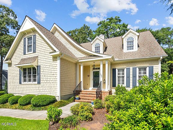 Welcome home to this incredible William Poole built craftsman style home in Kensington Place that's just minutes to Wrightsville Beach, Airlie Gardens and UNCW. This lovely home sits on a cul-de-sac and comes with 4 bedrooms, 2.5 bathrooms, a huge FROG, 2 car side entry garage and a wood deck overlooking the lush and peaceful backyard. The living room features a two-story vaulted ceiling, wood burning fire place and built-in cabinets with adjustable shelving. The first-floor master bedroom is tucked away in the back of the home. The updated master bathroom features a glass enclosed tile shower, double vanity, spa tub, tile flooring, custom built cabinet and a walk-in closet. The open kitchen features Quartz counter tops, island with a double under mount sink, stainless appliances and tile backsplash. Wood flooring runs throughout the front sitting room, formal dining room, kitchen, breakfast nook and living room. Upstairs you'll find the second, third and fourth bedrooms all with carpet and ceiling fans. The large oversized FROG can be used in any number of ways. Additional features include a downstairs powder room, laundry room, hurricane window protectors for most of the big windows, well for irrigation, dehumidifier in the crawl space and a home warranty for extra peace of mind.