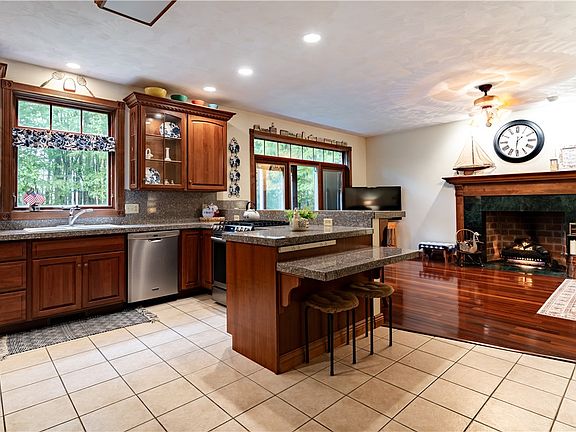 Step into timeless charm with this stunning Colonial home nestled on 10 wooded acres featuring 8 spacious bedrooms, each with its own en-suite bath. Formerly a Bed and Breakfast, now perfectly suited for a large family estate, this property blends historic charm with modern comfort. Each bedroom is warm and inviting, providing comfort and privacy. The gorgeous kitchen offers abundant, solid cabinetry and generous counter space with bar seating. A cozy living room or dining space with gas fireplace overlooks kitchen and access to backyard. A formal dining room and additional family room on main level. First floor primary bedroom with exotic flooring has double closets, jet tub and sliding doors to outside. Laundry on 1st and 2nd floor. The grounds offer a welcoming setting with room to relax outdoors or privacy and wooded trails. Whether you’re seeking a turn-key business opportunity or a residence with abundant space, this property delivers charm, versatility, and endless potential.
