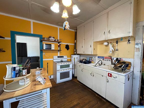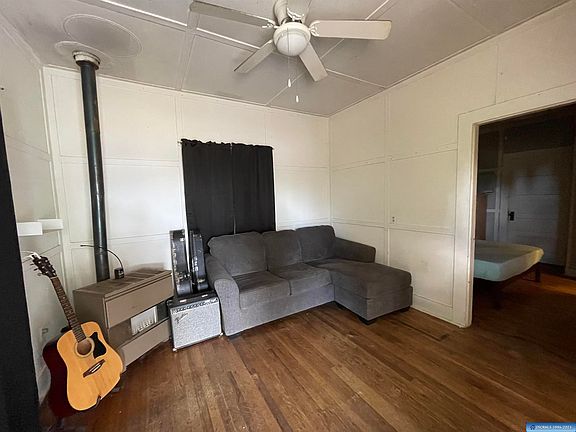 A good fixer-upper opportunity.. this is an "AS IS" sale - house feels sound and level. Metal roof on house and garage/workshop. Needs lots of TLC inside and outside. Owners had the plumbing beneath the house redone by a licensed plumber. Elec panel has breakers. Large corner lot, access to back of lot thru double gate. Plenty of room to park RV or other vehicles. Two-car detached garage/workshop. Yard is fenced front and back w/fenced divide between front and back. Gas heater in LR heats entire house.