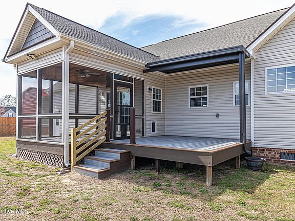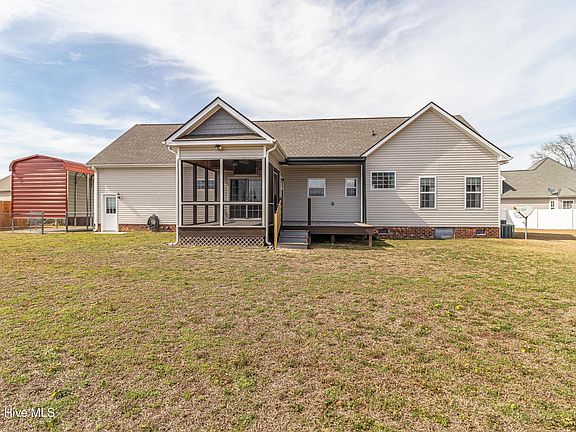 Just in time for spring!! No HOA!! Come see this lovely, well kept home in the Autumn Ridge Subdivision. Nestled on a quiet culdesac lot, the home features 4 bedrooms, 2.5 bathrooms, and vaulted ceilings in the living room. The master bathroom has been recently updated with a massive porcelain shower, the roof was replaced in 2024, and new moisture barrier in 2022! Bring your furbabies to enjoy the dog door and fenced in backyard! The backyard boasts a screened in porch AND deck, both made of TREX board! Don't miss the shed with plenty of room for storage. Nature lovers can feed and watch an abundance of deer, birds and squirrels. There is a spacious garage with a mud sink and RV Shelter / extended concrete pad for extra parking! To top this off, the fridge and FOUR TVs convey!! (One is mounted on the patio!!) Home has been professionally cleaned. Conveniently located 20 minutes from SJAFB, this home is waiting for you to schedule a showing today!