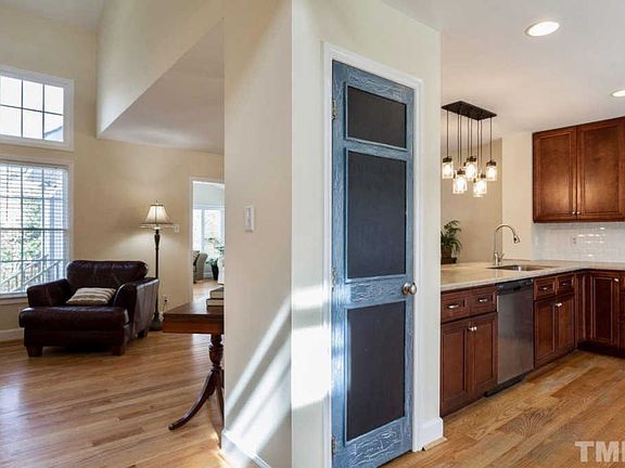 A lovely light-filled home w/incredible open floorplan in desirable Park Village! Enter to hardwoods THROUGHOUT! Updated kitchen has quartz countertop, newer cabinets & stainless appliances. Vaulted family room leads to oversized added SUNROOM - perfect for relaxing! Upstairs vaulted master has walk-in closet + updated ensuite bath. Spacious secondary bedrooms share bath. Entertain on the new large deck in fenced backyard! 1 car garage. Top notch amenities include pool, playground & parks! Walk to Cary Greenway! Amazing schools! Welcome home!