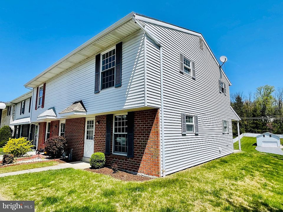 Looking for a turn-key yet very affordable townhome then look no further! This Hamburg Schools End Unit townhome located in the very popular Wyndcliffe development was just rehabbed in 2022 and is in move in condition! This beauty offers great curb appeal with a serene mountainous backdrop. The home was built in 1979 and is a 2 story with a classy brick built front and was built on a slab and features 3 BRS, 1.5 baths, spacious living room, kitchen/dining room combo with large storage closet housing the electric water heater and makes for a wonderful pantry and storage! There is a nice sized 10x10 attached storage room on the outside adjacent to the covered patio. This beauty features many recent improvements including all new carpeting, luxury vinyl, freshly painted throughout, replacement windows, modern eat-in 18 handle kitchen with electric smooth top range/oven, built-in microwave and Corian countertop plus an adjacent spacious dining area with French doors to the covered patio. The 2nd level has 3 BRS all private with all new carpeting and a large modern full bath. All electric home with baseboard heat. The home also features a newer architectural shingle roof. Nice open common ground space to the rear provides a great distance and buffer between the houses while providing fantastic mountain views. The HOA is $150 a year for common ground maintenance only. There are 2 parking spaces directly out front of the house to ease your parking worries. The home is located just off i78 and close to schools, shopping and medical facilities. Easy to show and ready for a quick possession!
