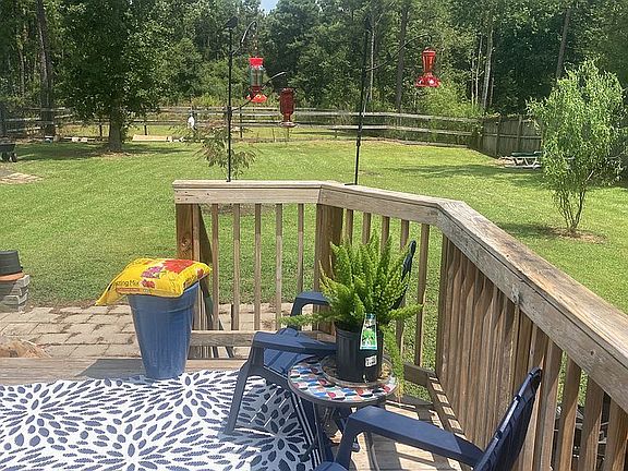Open floor plan living room dining room and kitchen. All new appliances installed in 2018. In Jan 2019 We added a 12ft by 16 ft family room, (which has nine windows), to the back of the house. A second set of French doors open out onto large raised deck, with an elevated grill for grilling outdoors. There is a large privacy fenced back yard, which leads into a secondary area, which is farm-fenced yard, ready for chickens or whatever this level property can be imagined. A large portion of the included property is still fully treed. There is a large Burmese, for those wanting to target shoot. This property is Very Rare, in that the street only has 12 house and is very quiet. Moncks Corner, Goose Creek, and Summerville are all within 15 minutes from this home.