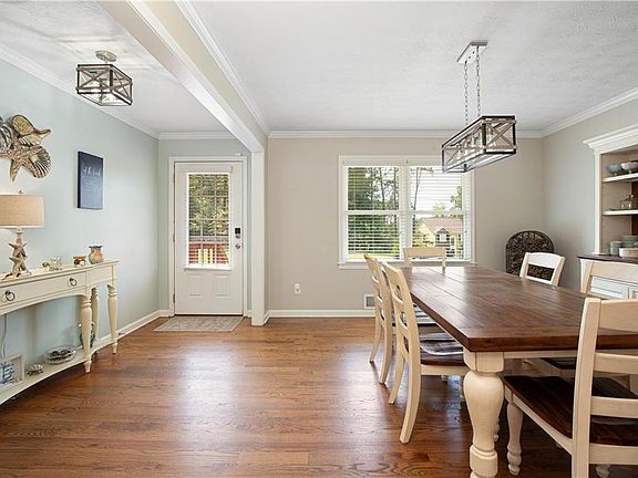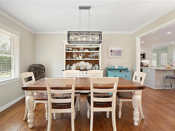 Location and acreage, a remodeled Ranch home just 3 minutes from the Cumming City Center within the great schools in Forsyth County. This well-built, 4 side brick ranch home features 4 bedrooms, 2 baths with renovations that include real hardwood floors throughout and a remodeled modern kitchen to start. A spacious open floor plan welcomes you in with a large formal dining room, gracious office space and updated kitchen. Kitchen upgrades include enlarged breakfast bar island, stainless steel appliances (2022 Kitchen Aid), hood vent now vents to outside, kitchen sink that overlooks your beautiful backyard, a view of the living room, step in pantry with Elfa shelving, and laundry room with cabinet storage space, utility sink and Elfa shelving to fold your laundry. Utility area welcomes you with cabinets and counterspace for a coffee station/phone charging station, you decide. Living room features Stone masonry fireplace, double door to back deck and plenty of natural lighting. Ensuite shares a custom Elfa designed walk-in closet, with updated bathroom showcasing a double vanity and walk in shower. Sitting on an unfinished basement with all the benefits of electrical, HVAC and studded. Your options are endless with the additional space, whether adding additional rooms, a recreation room or even a rental apartment. Prepare to be amazed with an oversized open deck overlooking a well-maintained fully fenced in back yard. Property includes a barn on the far back side, newly placed 20X12 shed with electricity and double door access. This home allows for plenty of outdoor activities on 1.59 acres in a quiet community with the freedom of no HOA, a privately fenced lot with an extended driveway for plenty of parking. Sellers had septic cleaned in March with new drain field installed in May of 2025. The location is an easy golf cart ride to the ever so active Cumming City Center or Big Creek Greenway!