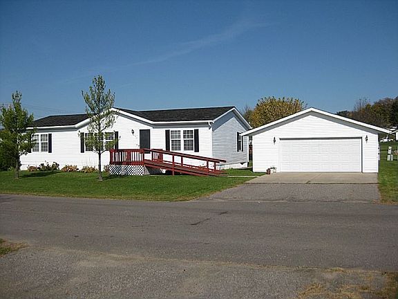 L125 3 bedroom, manufactured ranch home with 2 baths, front deck is wheelchair accessible, large deck off back of home. 1,350 sq. ft. of clean living area with 24x24 detached 2 car garage with door opener, situated one a corner lot in Creek Side Mobile Home Park near the fairgrounds. Park rent $250/month, Taxes $68/month .Available now and priced to sell right away! $57,900.00