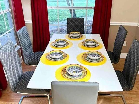 Located in Davenport, this spacious villa offers a luxurious stay with a private pool and spa, just 17 km from Disney's Animal Kingdom. Situated on the ground floor, the air-conditioned villa features four bedrooms, a flat-screen TV with streaming services, and a fully equipped kitchen complete with a dishwasher, oven, washing machine, microwave, and fridge. Feel at home with the convenience of free WiFi and private parking for guests who drive. Enjoy the villa's indoor pool and garden, perfect for relaxation and leisure. The villa is thoughtfully designed with a private entrance for added privacy. Towels and bed linen are provided, ensuring a comfortable stay. Guests have access to the entire house, including a driveway that accommodates two cars and overflow parking on the road. A small 18-inch charcoal grill is available at no cost upon request before arrival. For those needing a propane/gas grill or other vacation gear, arrangements can be made. Only small pets or dogs under 40 pounds are allowed with a $150 pet fee per animal. Legal service dogs are exempt with proper documentation. Any damages or extra cleaning caused by pets will incur additional charges. The villa is ideally located near popular attractions such as Disney's Blizzard Beach Water Park (19 km), ESPN Wide World of Sports (19 km), and Disney's Boardwalk (20 km). The nearest airport is Orlando International Airport, 47 km away, making travel convenient. Additionally, Walt Disney World is just 6.5 miles away, Universal Studios 20 miles, Sea World 17 miles, Shopping Outlet 15 miles, and a supermarket only 1.5 miles from the villa. The property is non-smoking and features a 24-hour host on-site if needed. Guests are reminded that washcloths are not provided as they are considered personal items. In case this unit is not available, please check with our trusted partner for more options.