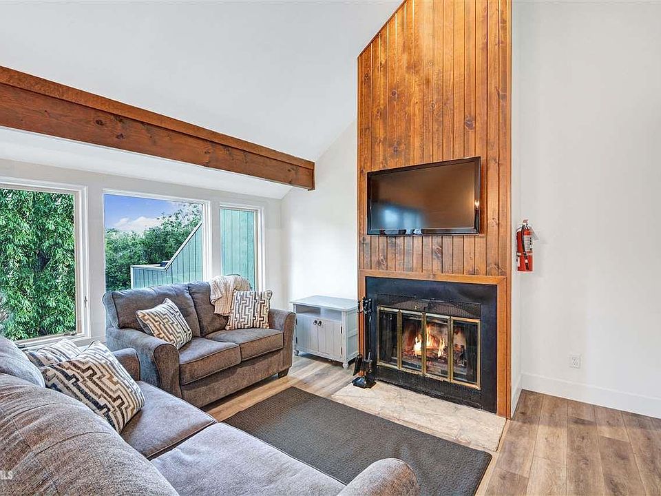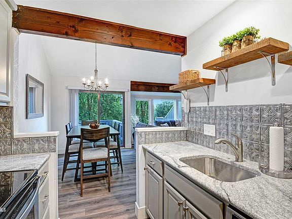 Completely updated and turn-key Eagle Ridge Townhome licensed currently as a 3 bedroom rental with quality finish work and strong rental history. Extensive renovation in 2020 included new kitchen and bathrooms, all new flooring, new Andersen windows throughout, new heating and AC, and fresh paint throughout. Enter the main level and enjoy a bright and cheerful foyer with accent wallpaper and a coat closet. Off the foyer, the spacious master bedroom includes a queen bed, luxurious bedding, padded window seat, more accent wallpaper, smart TV and private entrance to the full bathroom with walk-in shower. Just beyond is a light and bright living room with vaulted ceiling, accent wallpaper, large windows that let in plenty of light, and wood-burning fireplace with wood wall accent and TV mounted above, an open dining area that seats six and has access to comfortable rear deck with table, chairs and grill, and connected kitchen with all new cabinetry, granite counters, stainless appliances, decorative cedar shelving, and an eye-catching back splash. Upstairs, you'll find an open and airy loft setup as a bedroom with queen bed overlooking the living area below. The lower level is ideal overflow space for guests with generous family room complete with a Carrom hockey table and large flat screen TV perfect for movie nights, den/study set up by current owner as additional sleeping area (non-conforming) with twin over full bunk bed, twin trundle bed, and a large walk in closet, fully updated bathroom with tub/shower combo, laundry room with newer washer/dryer, and access from family room to second deck with plenty of seating and propane fire table. Unit comes fully furnished and ready to use including all linens, kitchen cookware, appliances, supplies and even additional supplies for rental guests in the lockable lower level closet. All windows have brand new window coverings as well. Rental license allows 8 person occupancy.