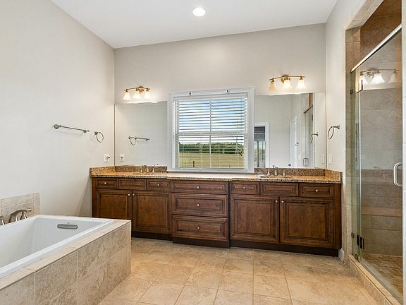 Double garageSoaking tubSpacious master suiteGranite countertops and backsplashCustom cabinetsLarge walk-in pantrySplit floor plan