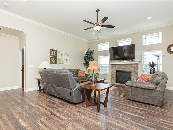 - Kitchen Island, Granite Counters, Walk-In Pantry, Double Vanity, Tub, Entrance Foyer, Kitchen/Dining Room Combo, Coffered Ceiling(s), Open Floorplan, High Ceilings