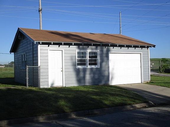 1950's home that is like new inside with original refinished hardwood floors. Seller has recently updated kitchen, bathroom, install some new windows were needed, new pain inside and out. Seller is installing new dishwasher, kitchen range and refrigerator. Separate laundry room. Eves on house are no maintenance. Quiet dead end street. 25 x 26 detached garage with yard space between. Outside electric between house and garage that could be used for RV connection. New interior doors. County shows as a 2 bedroom with 910 sq. ft. Seller has enclosed garage to make an additional 234 of living space that is a 3rd bedroom or family room. Would also make a great workout room. Walk to hospital . Poplar Place is located 2 blocks west of hospital.