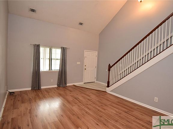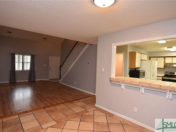 Great corner end unit townhome nestled in the heart of Richmond Hill. Upon entering from the front porch you are met with soaring ceilings and beautiful hardwood floors. Dining room and the spacious galley kitchen both have gorgeous, neutral tile floors. Kitchen is bright with several windows and a breakfast bar. Laundry room is a nice through way from the man cave/garage. The beautiful hardwood staircase leads to two large bedrooms upstairs complete with a jack and jill bathroom. Enjoy the covered front porch or back porch in your fenced in, large backyard. Walking distance to the rec center, shopping, gym, schools and park. No HOA.