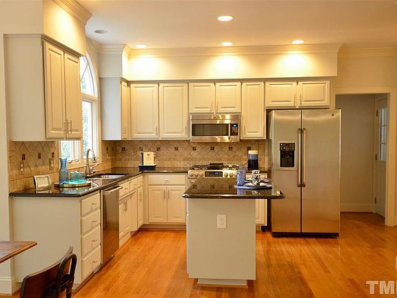 Desirable Picardy Pointe. Walk to Apex Lake Park. 5 BR, 3.5 Baths Formal LR & DR and Bonus Rm. Inviting kitchen with granite counters is open to FR. Updates include, 50 yr roof 2013, HVAC main floor 2018, fiber cement siding 2014, Updated kitchen, interior paint, carpet & garage doors in 2019, refreshed baths and fixtures 2019. 3rd floor suite with full bath. Walk in crawl space with workshop / concrete pad. Irrigation & HUGE garage. Ample storage in walk in attic. Roomy deck and extensive patio.