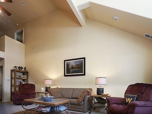 Master bedroom on the main level. Vaulted ceilings, gas fireplace in living room. Breakfast bar, dining area with french doors to the cover back deck. Large Master with walk in closet and large bathroom with double sinks, Walk in shower, and jetted bathtub. Upstairs are 2 large bedrooms with baths. Nicely furnished.