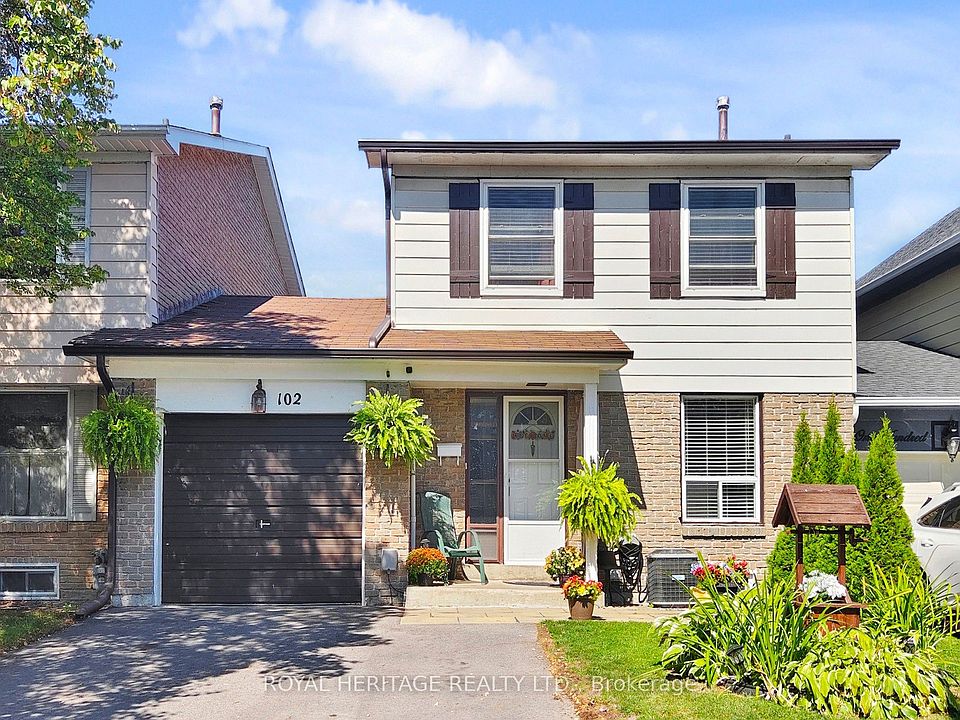 Welcome to this charming family home nestled in one of South Ajax most desirable, mature communities. Step inside to a bright open-concept main floor, featuring a renovated kitchen with modern finishes, seamlessly flowing into the living and dining areas. The warmth of dark engineered hardwood floors adds elegance and character throughout. Upstairs, you'll find spacious bedrooms, including a primary retreat with his & hers closets and a semi-ensuite bath for added convenience. The finished basement is perfect for entertaining, complete with pot lights, a cozy wood-burning fireplace (as is) , and built-in wiring for surround sound. Ideal for movie nights or family gatherings. Step outside to your own outdoor oasis! This home features a spacious, fully fenced backyard with plenty of room for kids, pets, or weekend gatherings. Enjoy summer barbecues and relaxation on the stone patio, complete with space for outdoor dining and lounge seating. A charming garden shed with window boxes adds both functionality and character, while mature trees and landscaping create a sense of privacy and tranquility. walking trail extending from Oshawa to Rouge Hill, walk to schools, parks, transit and minutes to hwy 401, 412 & 407, shopping and churches. Perfect for entertaining or unwinding, this backyard is a true extension of your living space.