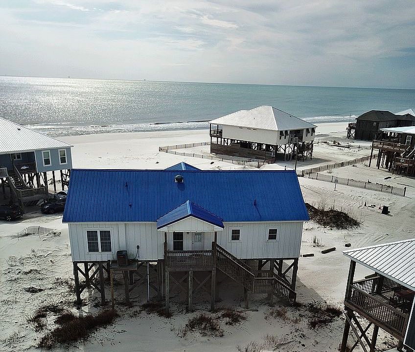 This is a 4 bedroom Gulf-side beach house on Dauphin Island's West End beach with its own private, heated pool. This Dauphin Island vacation rental sits directly on the Gulf of Mexico beach, and has great Gulf views from nearly every room. The house is built on a large 135x100 lot and is in the desirable AE Flood zone, with very reasonable Insurance for a beachfront property. Recent improvements/upgrades include a new HVAC unit (2019) and new LVP flooring (2019) and fresh interior paint 3/20. There is a Gulf-view Master bedroom with en suite bath. There are two more Gulf-view Bedrooms and on the other side of the home is a Bunkroom that is presently set up for four Guests. The house is placed at an angle to provide optimum views of the Gulf; the placement of the house provides a 60-foot wide direct view of the Gulf, only about a hundred feet away! This home is one of the most popular vacation rentals on the Island, with annual rentals of approx $90K/yr. Properly managed, this home can be an income producing property for its new Owner. Buyer's Agent inquiries are welcomed. Seller is an Alabama-licensed Real Estate Broker.