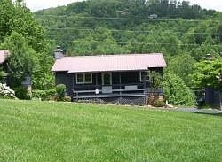 Charming cottage/bungalow in Maggie Valley. Easy access. Great views. 2 Bedrooms, 2 Baths. Open floor plan offers living room with a fireplace to cozy up to on those cool mountain nights. Dining and Kitchen areas add to the coziness of this home. There is an enclosed 120 SF +/- sunroom with long range mountain views that is not included in the square footage of the home as it is not heated. Ready to move in, sold fully furnished. Sold as is.