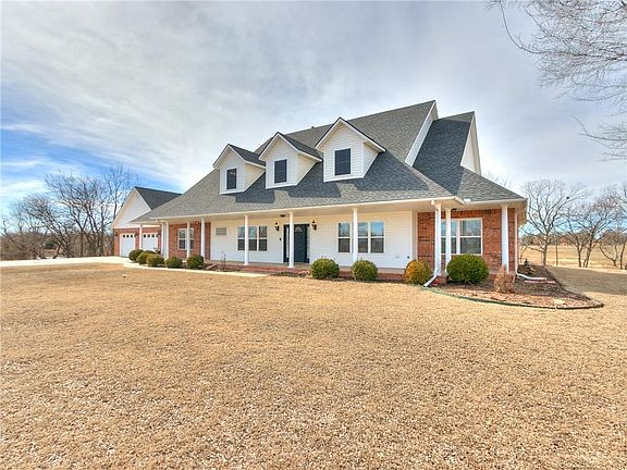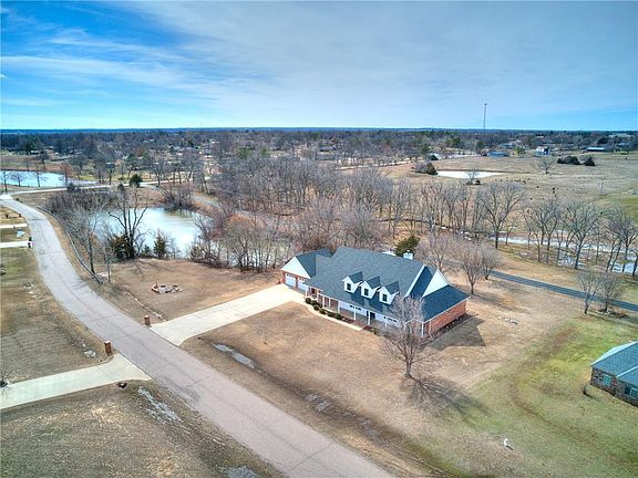 Beautiful custom built home sitting on an acre with quick and easy access to I40, a short golf cart ride to Elks Golf Course. This home has room galore inside, each bedroom has private bathroom access. Two living areas each with fireplace, home also has a wonderful sunroom to enjoy the views. Beautiful kitchen with double ovens, granite countertops, windows give great natural light as well as gorgeous views. Spacious laundry room with Safe Room. Primary bedroom on one end of the home with jacuzzi tub and shower, Beautiful Office with floor to ceiling bookshelves with attached full bathroom and closet, the bathroom is also accessible from Primary Bedroom if you prefer a full his and hers bathroom!. Second Primary Bedroom on other end of home with attached full bathroom. HUGE bonus space upstairs with bedroom and full bathroom. Big covered porches on front and back with a pond on part of the property. Nice private backyard with pond view and a storage shed. Schedule showing today!