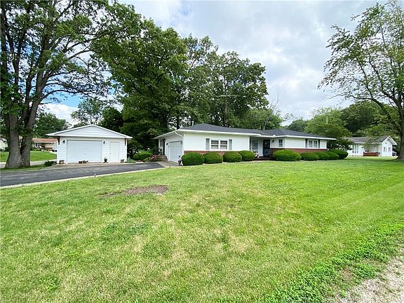 Just outside of town this home sets on a beautiful lot with mature trees and a lovely yard. Enoy the front porch, deck and sun room. There is also a detatched garage in addition to the attached garage. The large kitchen has a new backsplash, a nice eat-in area and doors to the sunroom. The dining room has great built in corner cabinets and is open to the large living room. The master has double closets. The master bath has beautiful built ins and a pocket door to seperate the sink from the toilet;shower. Additional detached garage adds extra storage or room for a workshop area. Don't miss out! Set your appointment today. Roof is two years old and a/c is 3 years old