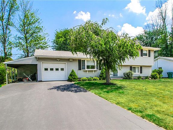Welcome to your next home! This beautiful and spacious split level greets you at the curb with gorgeous lovingly maintained landscaping. On the other side of the front door you will step into a large living room filled with natural light pouring in the massive picture window. The living room opens to a fully updated eat in kitchen ready to make all your cooking a breeze. With stainless appliances, wonderful light wood cabinets, island and huge dining area it is sure to please all! For some extra room to spread out you will a fully finished lower level. The recently remodeled space offers endless possibilities and includes a projector with 100 inch electronic screen and surround sound, along with all new flooring, a wet bar sink and half bath! Upstairs there are 3 bedrooms, with new flooring, and a full bath! Through the sliding glass door the amazing backyard awaits! Overlook all the beauty from the enclosed sun porch. A stamped concrete patio with hot tub is the perfect place to spend all the long summer days! Plus a 1 car attached garage & car port. For added convenience the home is equipped with Greenlight internet! Don't miss out on all this home has to offer!
